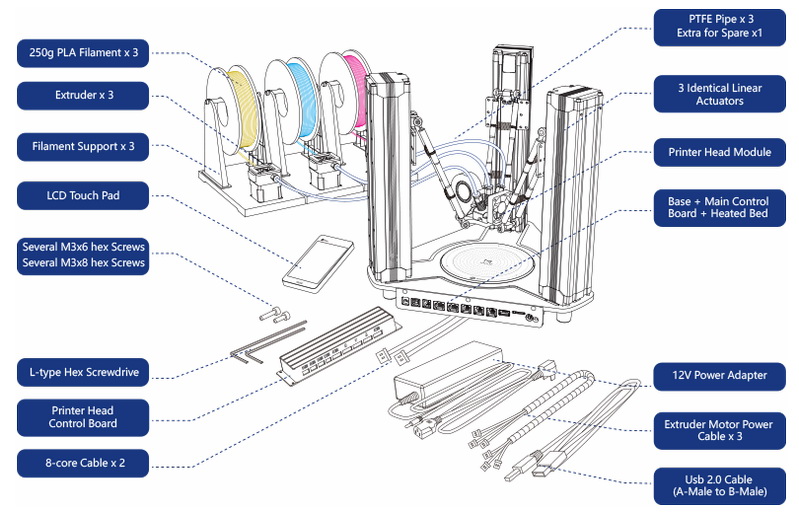 3D принтер DOBOT MOOZ-3 - модульный FDM принтер с дельта-кинематикой. Устройство подходит для создания сувенирных изделий и объектов разных цветов. 3D принтер подойдет как для начинающих пользователей, так и для профессионалов.