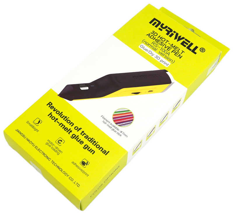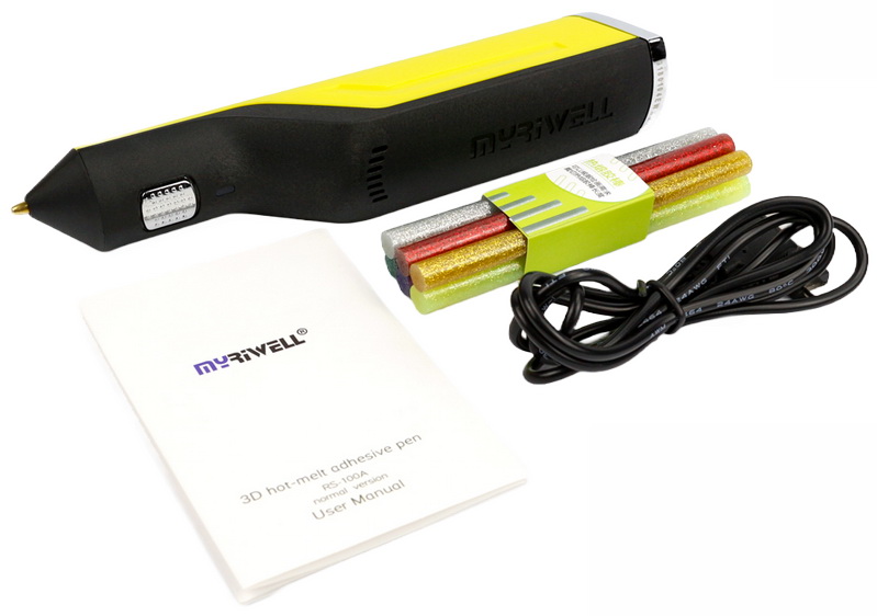 Комплект поставки3D-ручка Myriwell RS100A - 1 шт; USB (Micro - A) кабель питания - 1 шт; Демонстрационный набор клеевых стержней (6шт по 12см)