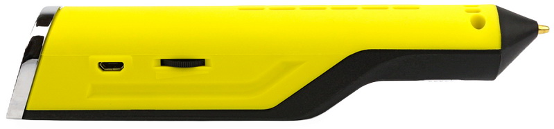 Эта 3Д-ручка использует клеевые стержни из высококачественного, биоразлагаемого клея, который безопасен для пользователя и для окружающей среды. 3Д-ручка имеет рабочую температуру 120 градусов по Цельсию. Клей подаётся автоматически, а для регулирования скорости используется встроенное колёсико.