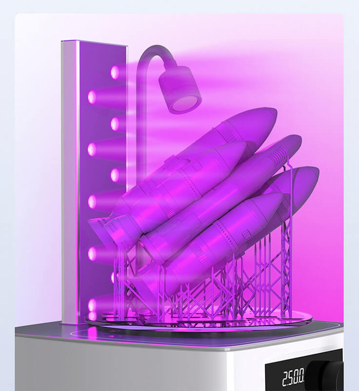 Путем использования новой конфигурации светодиодов и линзового источника света, Anycubic Wash & Cure 3 улучшил однородность отверждения на 20% по сравнению с предшествующей версией 2.0. Это обеспечивает более тщательное и полное отверждение всей модели.