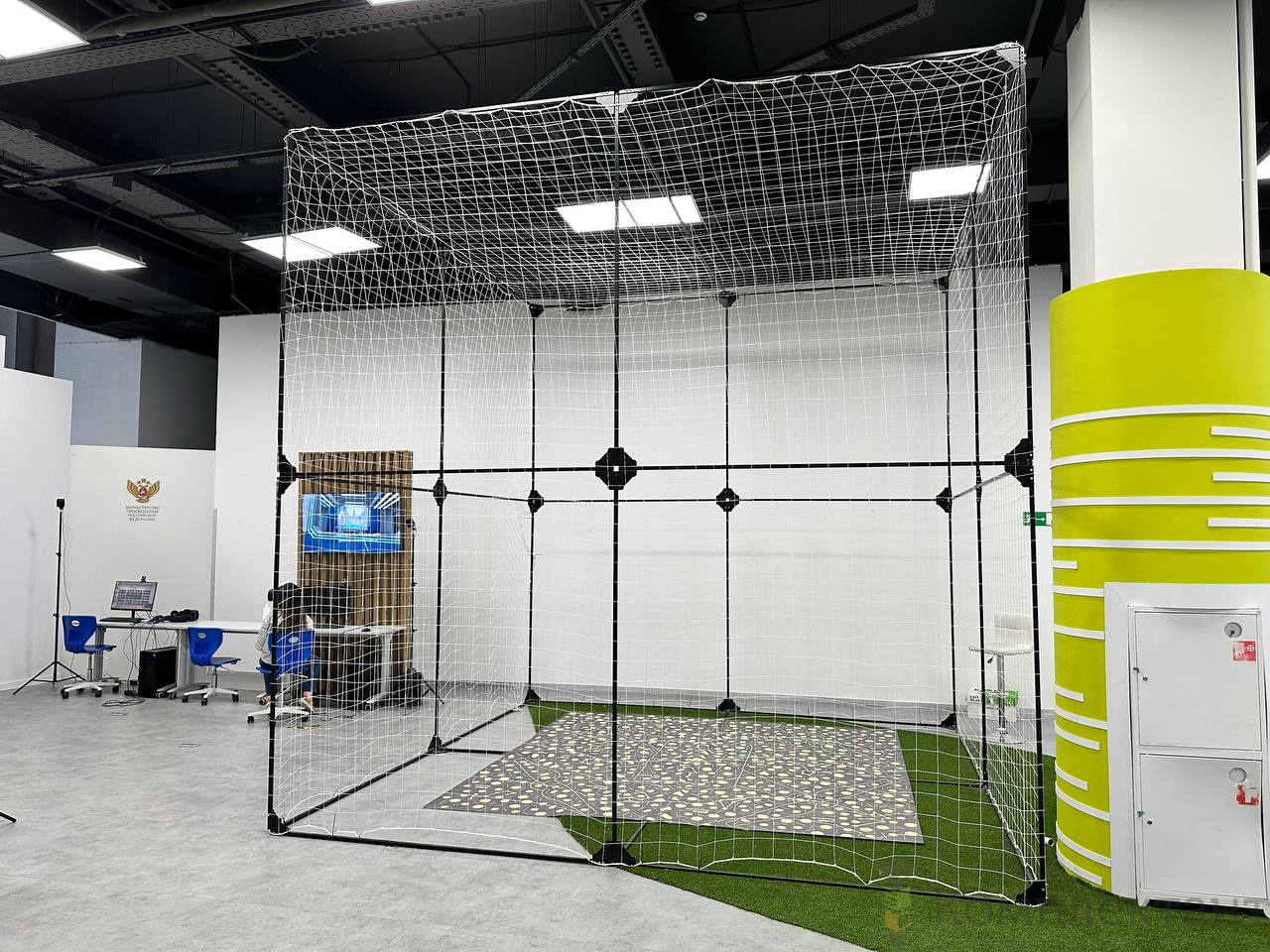 Оборудованная зона для полётов – куб для полётов 3х3х3м с демпфирующим покрытием