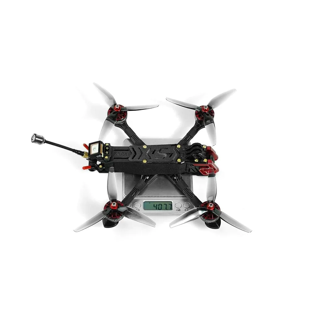 Дрон имеет трехлопастные и 5-дюймовые пропеллеры, которые обеспечивают отличную подъемную силу. Размеры квадрокоптера составляют 230 мм x 184 мм. Колесная база в 215 мм обеспечивает стабильность и маневренность. Этот дрон легко управляется даже в сложных условиях.