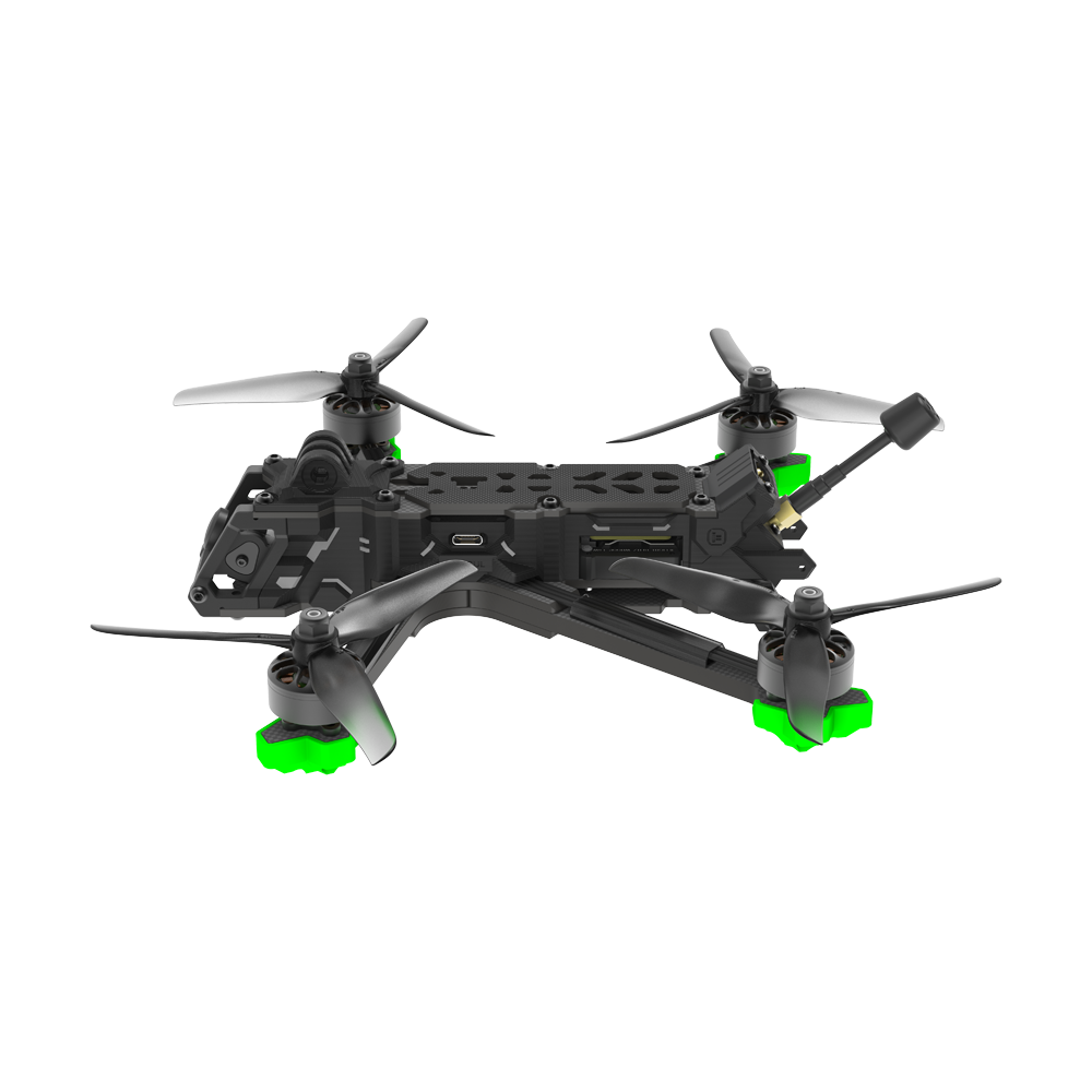 Каркас дрона выполнен из прочного материала. Это делает его устойчивым к повреждениям при падениях. Дрон имеет компактные размеры, что упрощает его транспортировку. Благодаря современному дизайну, он выглядит очень стильно и современно. В наборе предусмотрены все необходимые компоненты для сборки. Вы получите моторы, пропеллеры и камеру. Также в комплект входит передатчик ELRS на частотах 915/868 МГц. Это обеспечивает надежную связь на больших расстояниях.