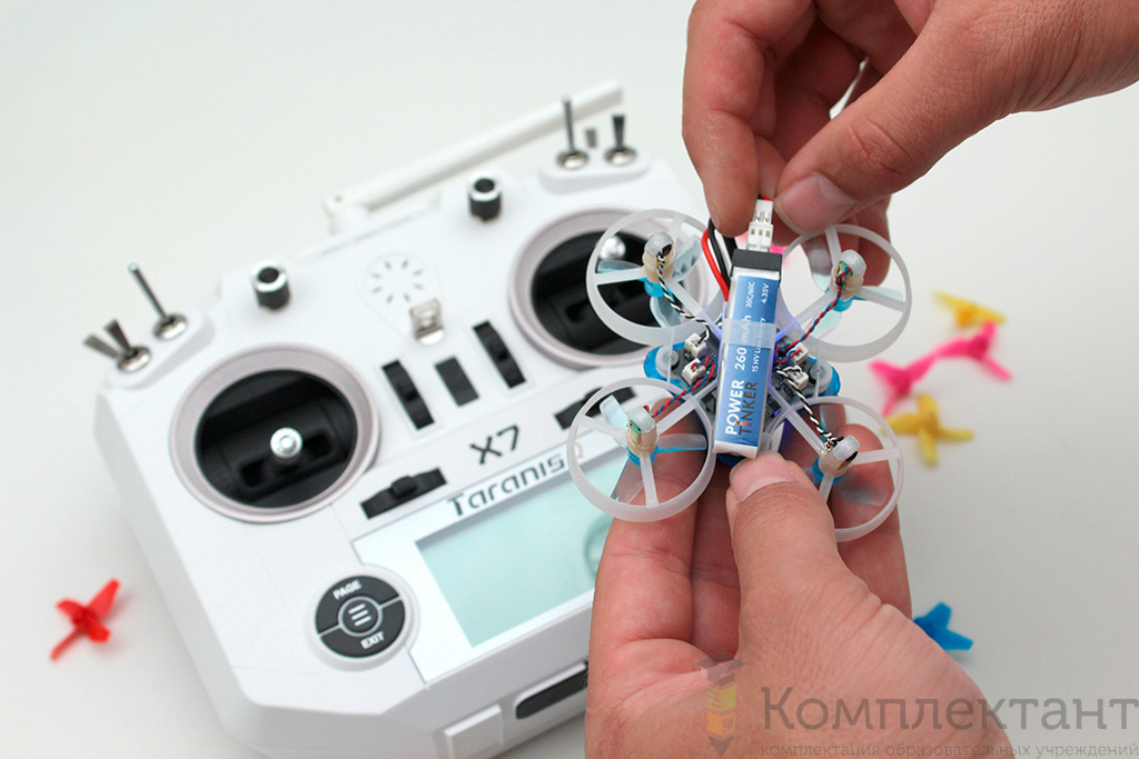 Образовательный набор безопасных мини-БПЛА вертолётного типа, готовых к полёту по специализированной полосе препятствий. Модуль позволяет освоить навыки управления дроном, его настройки и обслуживания. Подходит для участия в соревнованиях местного, всероссийского и международного уровня в классе квадрокоптеров F9.