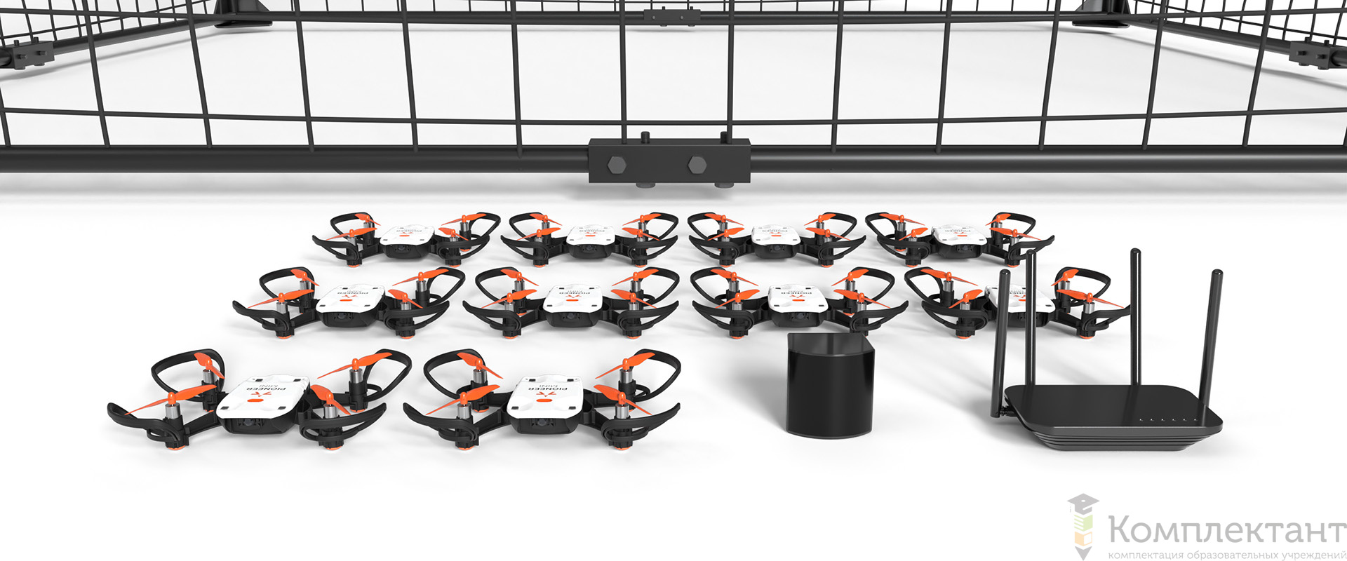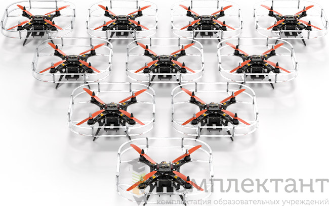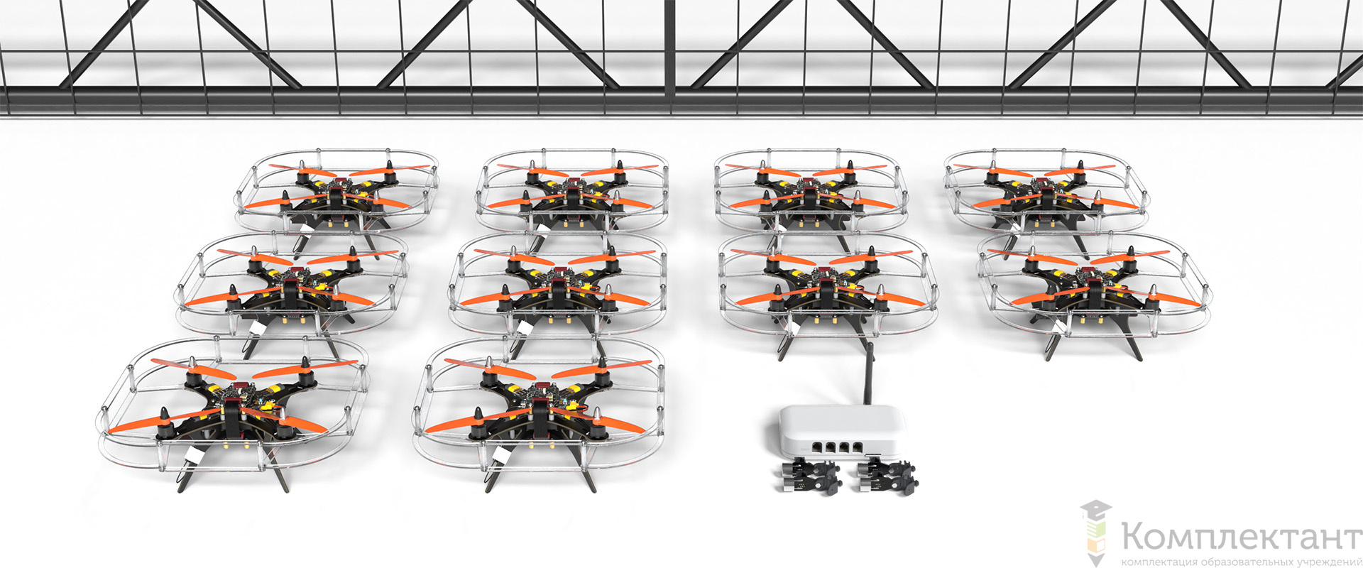 Набор включает 10 образовательных квадрокоптеров (Пионер Базовый или Пионер Мини), а также все необходимое для организации группового полета дронов в помещении. С его помощью учащиеся школ, колледжей и вузов могут отрабатывать алгоритмы роевого интеллекта, экспериментировать с выполнением задач навигации и распределенных вычислений. Комплект будет особенно полезен на занятиях по робототехнике или при организации соревнований.