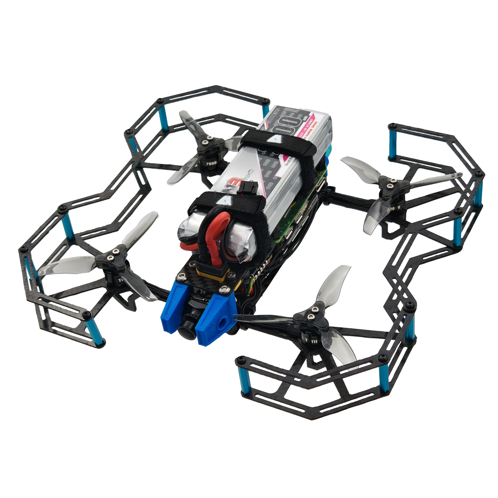 Эта модель микроквадрокоптера компактна и включает в себя интегрированный набор датчиков и модуль относительного позиционирования. Она обладает защитным карбоновым корпусом и защитой винтов.