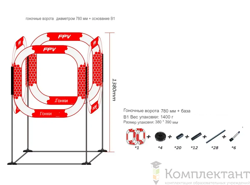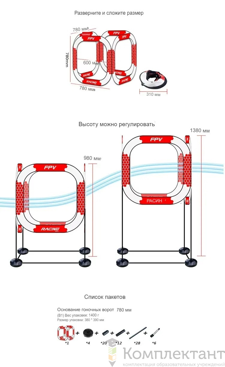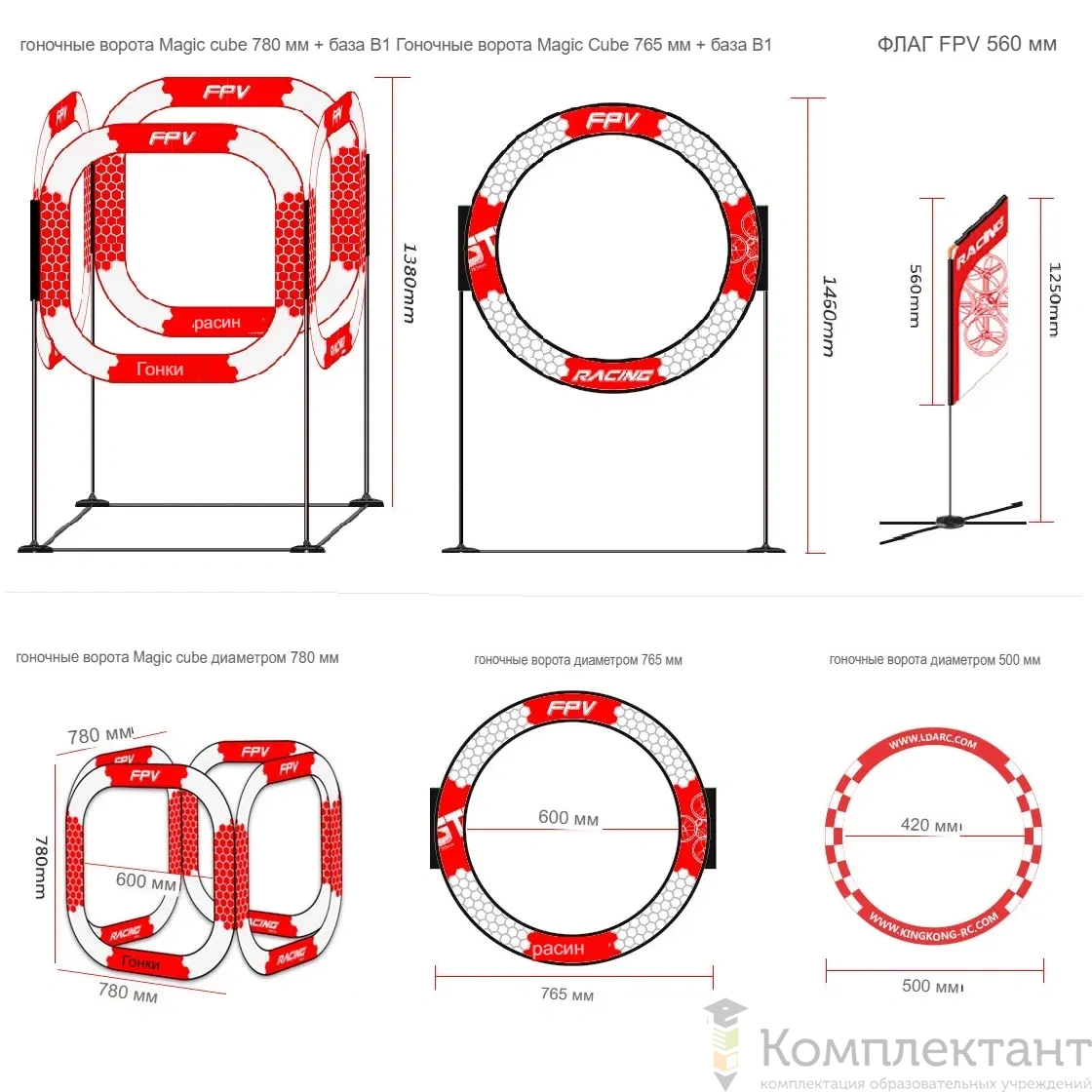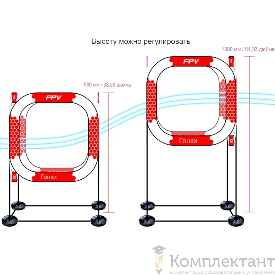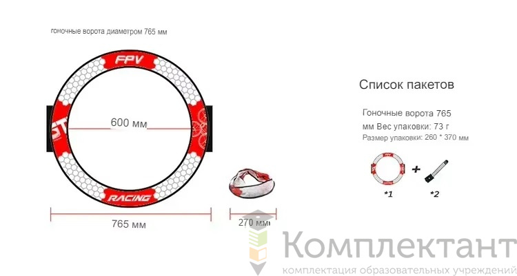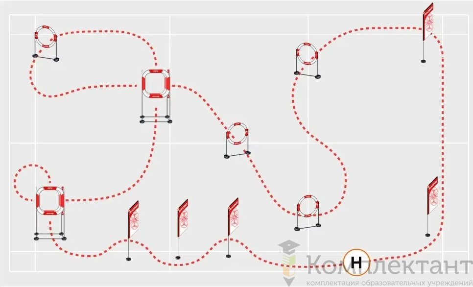 • 4 одиночных кольца на ножках высотой 765 мм — препятствия для прохождения дрона