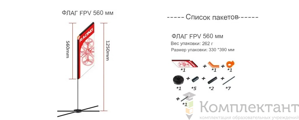 • 5 флагов высотой 560 мм — светящиеся маркеры для обозначения траектории полета
