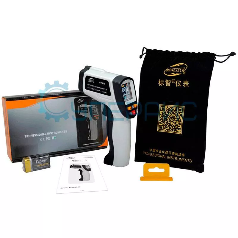 Комплектация | инфракрасный пирометр Benetech GT950 – 1 шт инструкция по эксплуатации - 1 шт чехол - 1 шт батарейка - 1 шт |