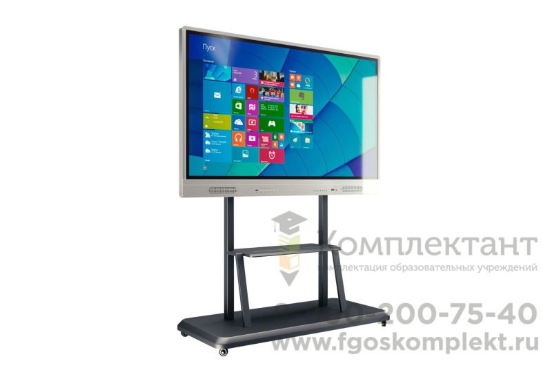 Интерактивная панель; пульт дистанционного управления; настенный кронштейн;  монтажные винты и крепления; кабель питания, длина 1.5 м; кабель usb-touch, длина 5 м; безбатарейный стилус х 2 шт. руководство по установке и эксплуатации.