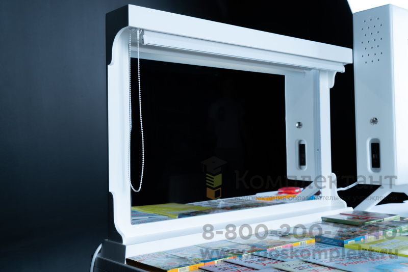 Профессиональное зеркало для специалиста логопеда, со встроенным сенсорным светодиодной подсветкой, безопасным зеркалом и рулонной шторой.
