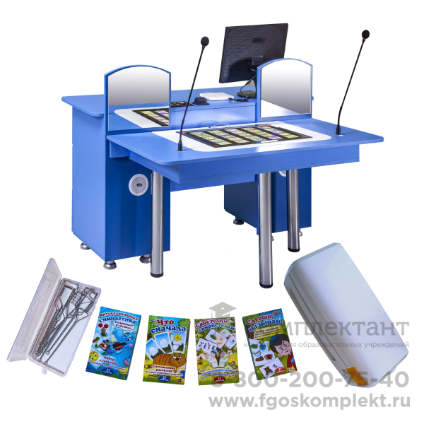 Комплекс подойдет для работы логопедов, сурдопедагогов, тифлопедагогов благодаря наличию интерактивной панели и зеркала. Комплектация: Модули интерактивного комплекса, Управляющий ПК., Акустическая система с микрофоном на гусиной шее., Узкопрофильные коррекционно-дефектологические программные комплексы, DVD-привод, Беспроводная клавиатура с мышью, Ручка-стилус, Монитор специалиста-дефектолога, Паспорт товара, Сертификат соответствия стандартам, + Комплекс дидактики.