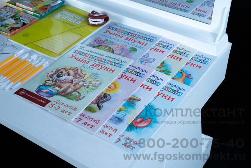 Профессиональный стол логопеда Logo Mini включает: 1)Безопасное акриловое зеркало на подставке 450 мм * 300 мм; 2) Программное обеспечение на USB-носителе: - Дошкольное Образование версия "Интерактив"; - Интерактивный квест "5 Островов"; - Интерактивная раскраска "Оживариум"; - Логопедическое программное обеспечение АЛМА Звукоречье; 3) Логопедические зонды из медицинской стали; 4) Методическое пособия: Нищева Н.В., тетради Азова (8 шт), Куликовская Т. А., Валявко С. М. Степанова О.А.; 5) Набор логомассажа; 6) Логопедические карточки, ордена и мотивационные наклейки (более 420 шт); 7) Встроенный стол для песочной терапии; 8) Тумба для хранения традиционных методик и инструментов. Высота стола - 75 см. Цвет - белый ясень. Зеркало со шторкой и подсветкой - доп.опция. |