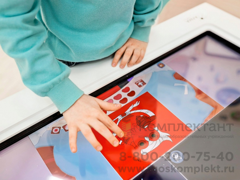 Присутствует функция разделения интерактивного экрана на 2 игровых сектора, что делает возможным задействовать как можно больше детей для групповой работы.