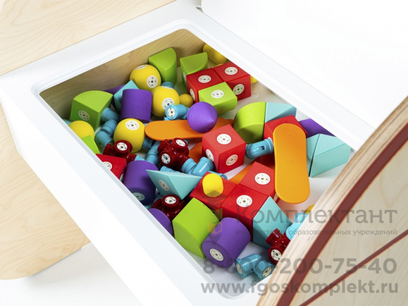 В первой зоне находится всеми любимый конструктор МАККИ 37. Универсальный мягкий магнитный конструктор, позволяющий собирать по инструкции до 25 моделей и придумывать свои собственные. Магнитные детали имеют различную геометрическую форму и цвет. Конструктор поддается обработке.