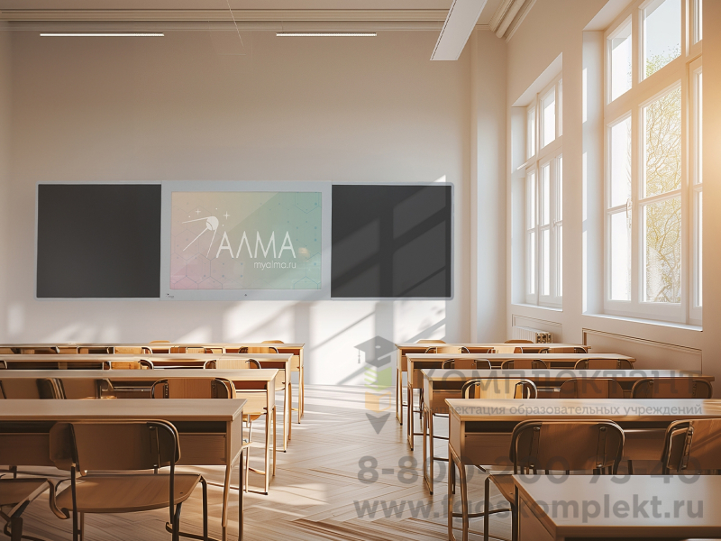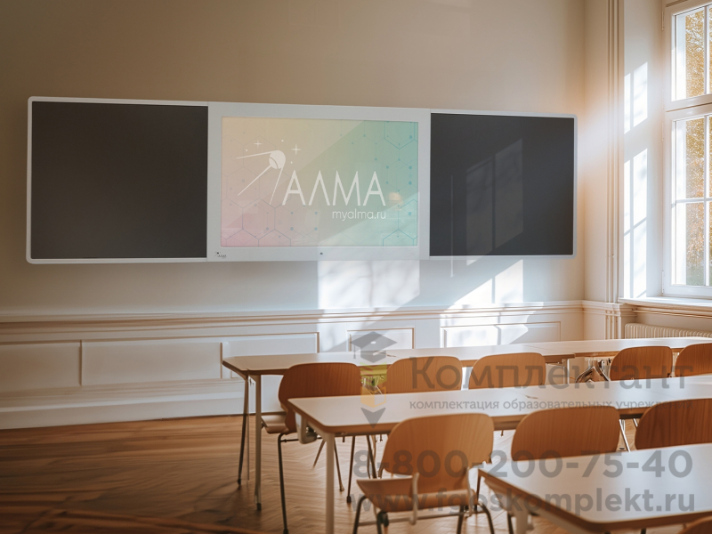 Современная школьная доска, объединяющая инновационные технологии и традиционные инструменты преподавания. В центре интерактивная сенсорная панель с multi-touch (до 10 одновременных касаний), по бокам - пишущая магнитно-меловая поверхность. Подходит для оснащения школ, учреждений культуры, детских кружков, развивающих и коррекционных центров для детей