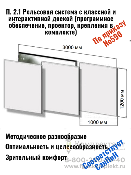 Комплект, объединяющий интерактивную панель с обычными досками, оптимален, в связи с медицинскими ограничениями на продолжительность непрерывного применения технических средств, в том числе экранных, в соответствии с требованиями СанПиНа и обязательностью использования обычных учебных досок наряду с интерактивным оборудованием в соответствии с приказом №465 от 03.09.2019 года Министерства образования «N 465 Об утверждении перечня средств обучения и воспитания, необходимых для реализации образовательных программ начального общего, основного общего и среднего общего образования, соответствующих современным условиям обучения, необходимого при оснащении общеобразовательных организаций в целях реализации мероприятий по содействию созданию в субъектах Российской Федерации (исходя из прогнозируемой потребности) новых мест в общеобразовательных организациях, критериев его формирования и требований к функциональному оснащению, а также норматива стоимости оснащения одного места обучающегося указанными средствами обучения и воспитания