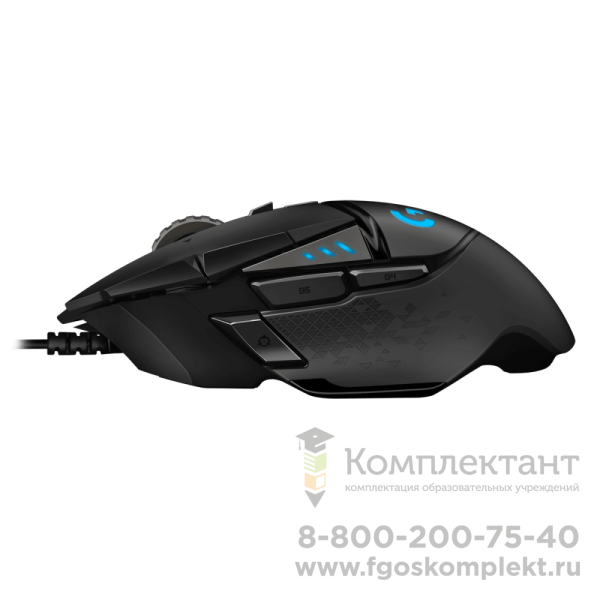 Мышь игровая Logitech G502 Hero черная, оптическая (Hero25K) , 100-25600dpi, 1мс, USB 2.1м, 11 кнопок (2 механика), RGB подсветка, утяжелители, под правую руку,