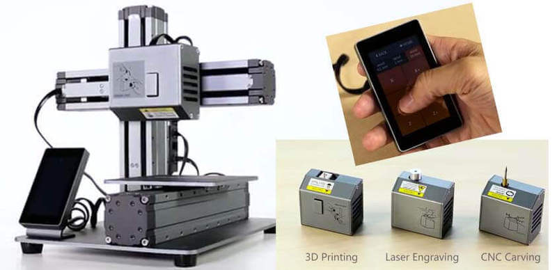 Snapmaker - новое 3D-МФУ, совмещающее в себе 3D-принтер, лазерный гравер и ЧПУ фрезер. Его корпус и направляющие сделаны из металла и обеспечивают качество и точность любого вида работ из доступных аппарату. Размеры устройства весьма компактные, и его можно без проблем разместить на столе.