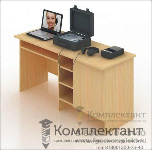 Лингафонный комплекс с головным компьютером преподавателя и компьютерами учеников. Комплект поставки: Сетевой коммутатор в плас, Мобильный компьютер преподавателя, Пульты управления учеников, Комплект соединительных кабелей, Дополнительный источник программ, Комплект документации.
