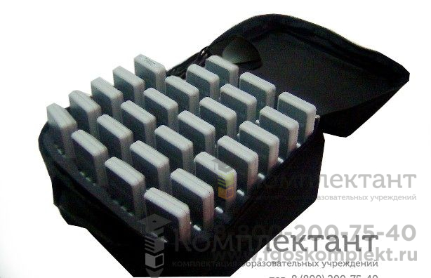 В комплект входит 25 пультов учеников, 1 пульт учителя, 1 радио-ресивер, сумка для переноски и хранения системы (с ложементом), DVD с программным обеспечением, документацией и базой тестовых заданий для VOTUM.