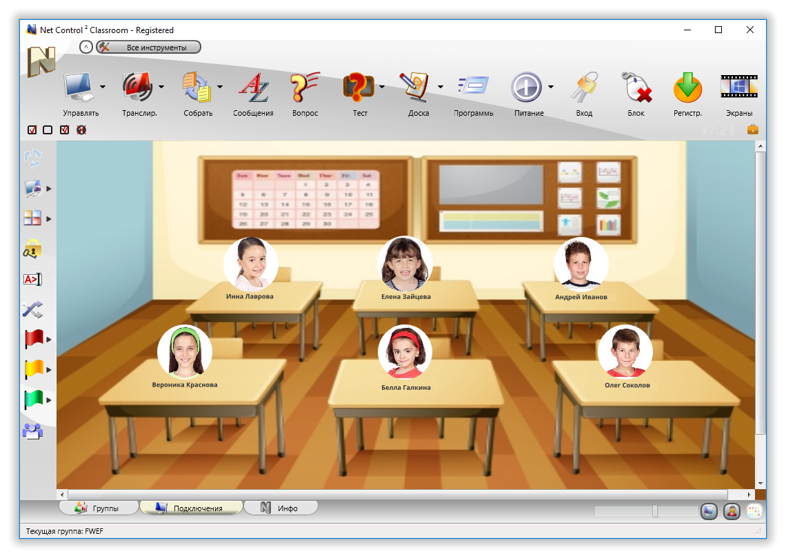 • Совместная работа: воспроизведение мультимедийных файлов синхронно с учащимися, совместный просмотр веб-страниц, возможность открывать необходимые документы и приложения на компьютерах учащихся.