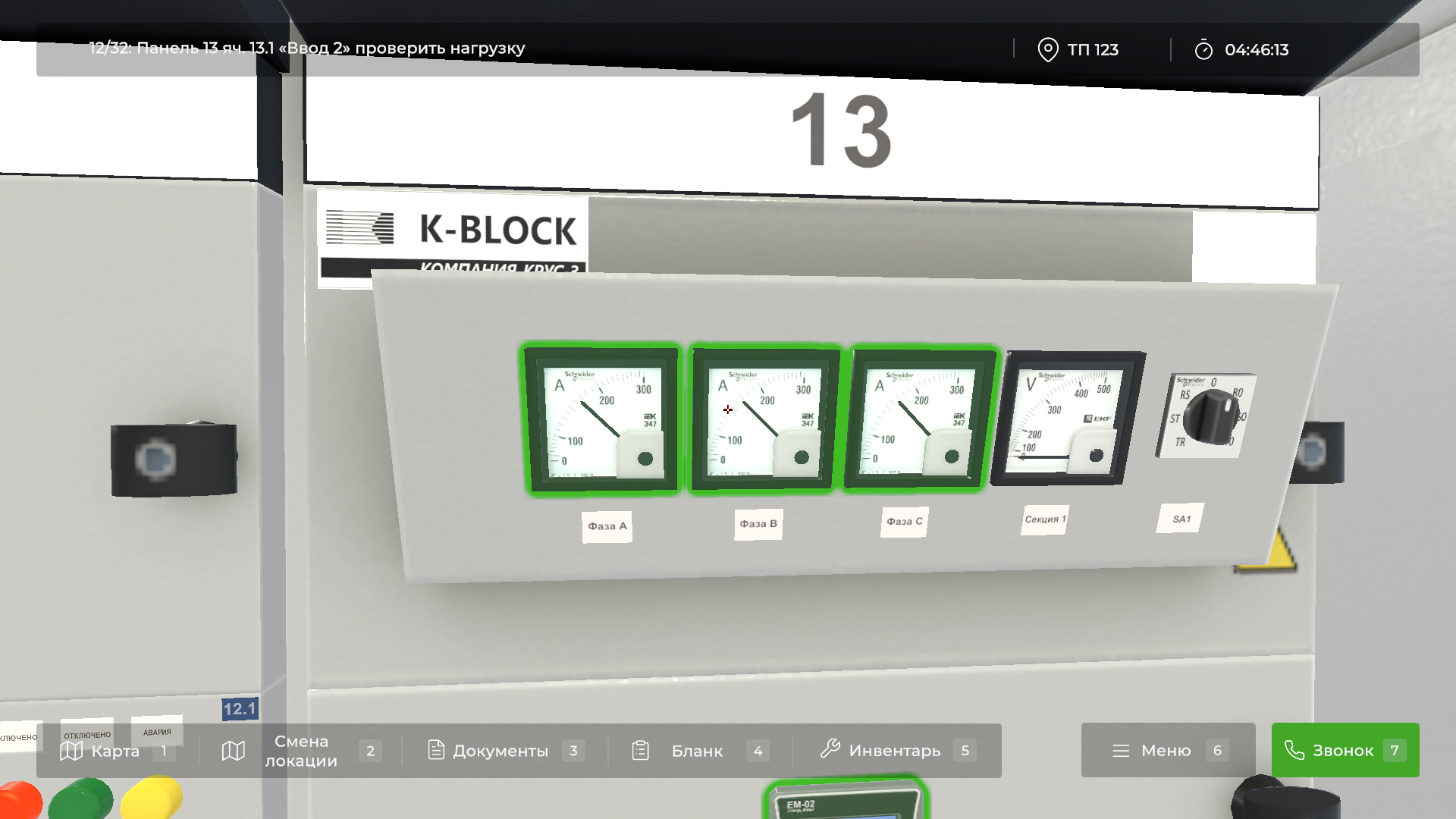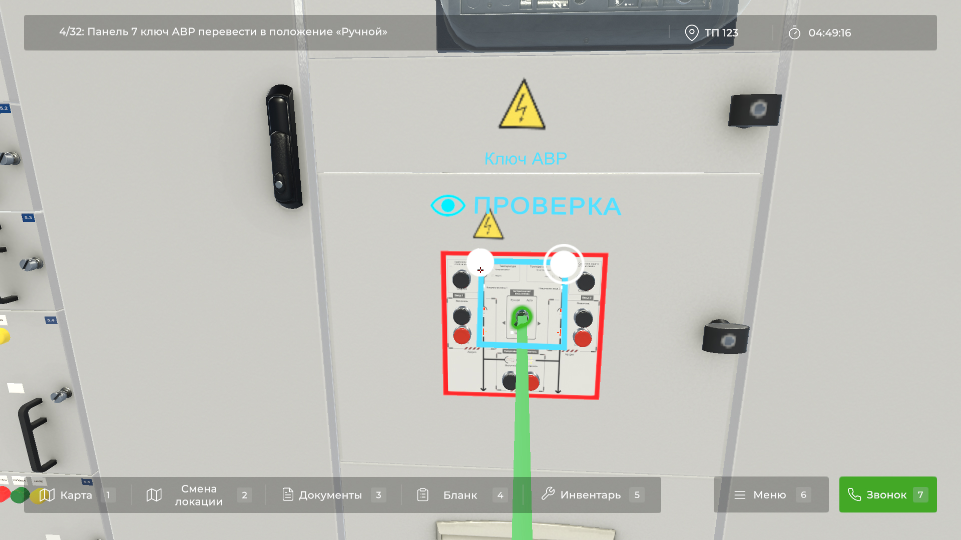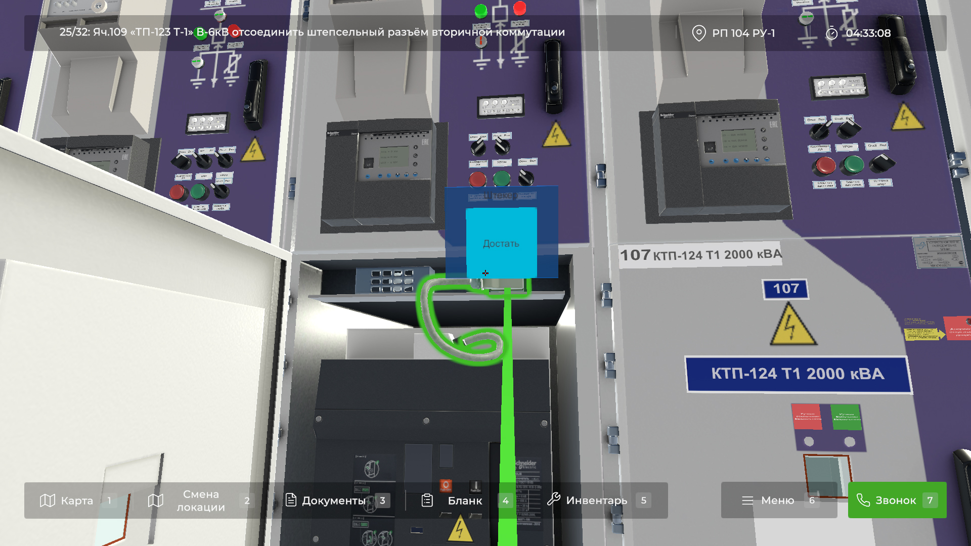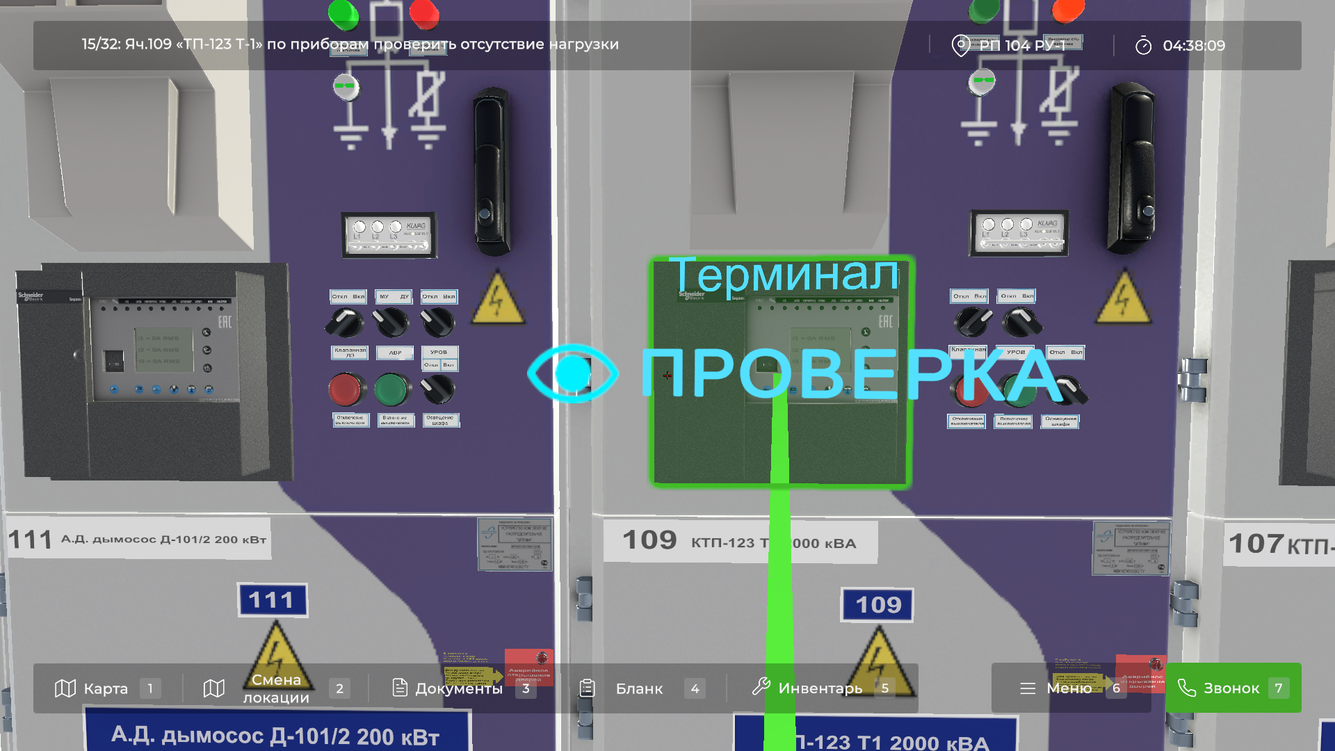В режиме экзамена пользователь воспроизводит правильную последовательность действий по выводу в ремонт трансформатора на ТП 10(6)/0,4 кВ в соответствии с бланком переключений без подсказок и без возможности допустить критическую ошибку.