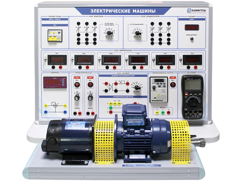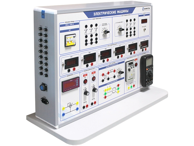 Комплект учебно-лабораторного оборудования "Электрические машины" предназначен для проведения лабораторно-практических занятий по курсу "Электрические машины" и обеспечивает изучение генераторов постоянного тока, двигателей постоянного тока, трехфазных асинхронных генераторов, трехфазных асинхронных двигателей с короткозамкнутым ротором.
