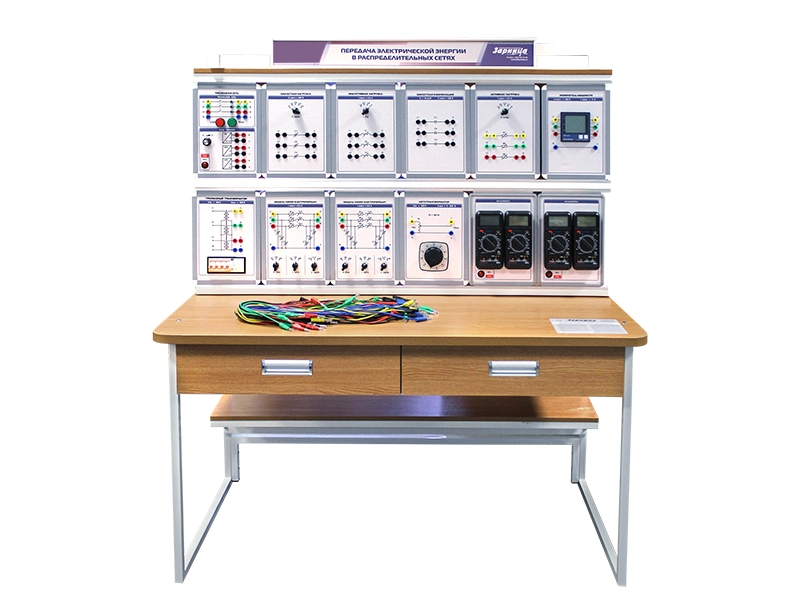 Комплект учебно-лабораторного оборудования "Передача электрической энергии в распределительных сетях" предназначен для изучения факторов, влияющих на потери электрической энергии в распределительных сетях, способов регулирования напряжения путем продольной и поперечной емкостной компенсации, влияния отклонения напряжения на мощность, потребляемую активной, индуктивной и емкостной нагрузкой.