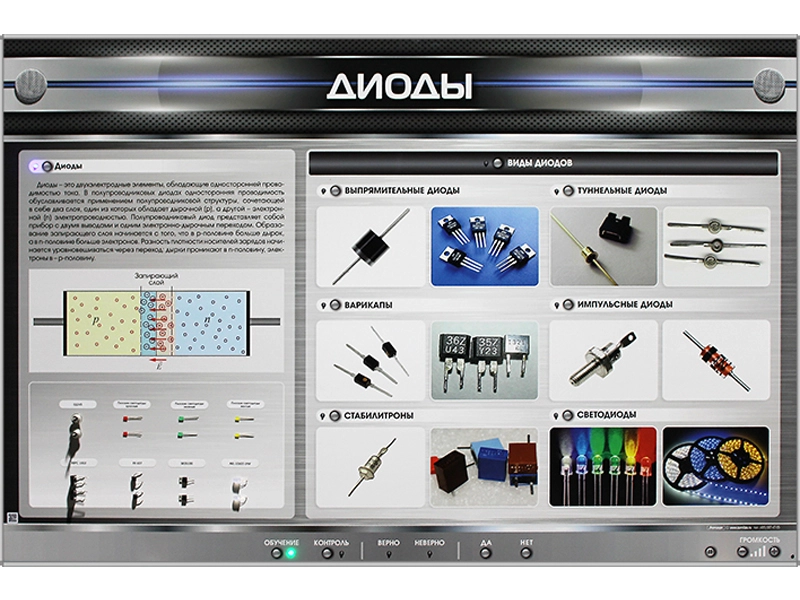Электрифицированный стенд предназначен для получения знаний о разновидностях и классификации диодов.