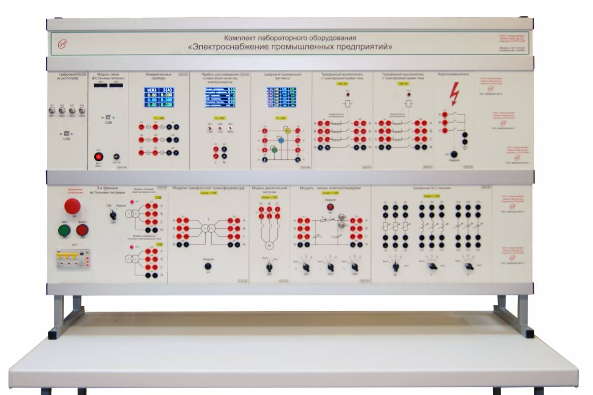 Исполнение стендовое, стойка со сменными модулями расположена на лабораторном столе.