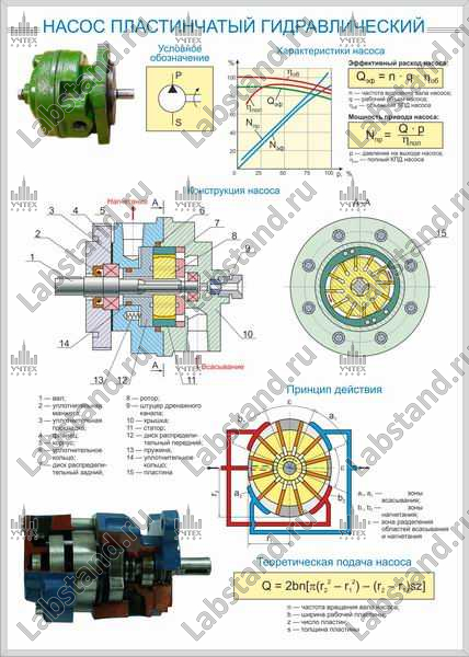 Планшет с изображением конструкции и схемы работы насоса, насос в разрезе