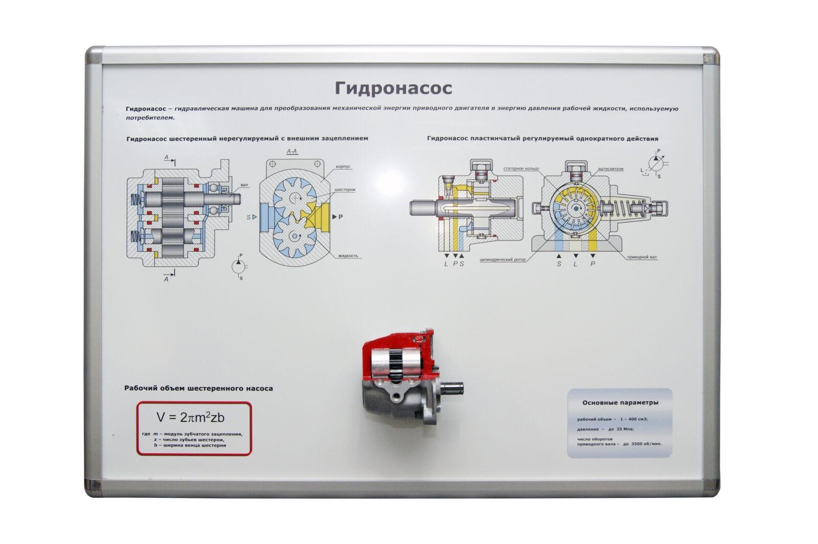 2) Учебный плакат-стенд справочный: конструкции и схемы работы насоса, насос в разрезе.