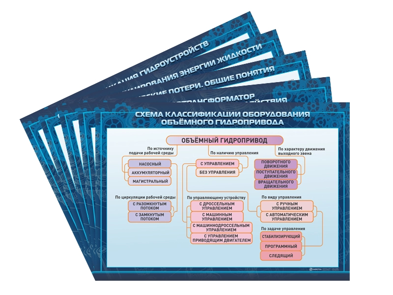 Комплект стендов «Гидравлика и гидропривод» представляет собой комплект информационных панелей, на которых размещены рисунки, схемы, таблицы, графики и формулы по курсу «Гидравлика и гидропривод».