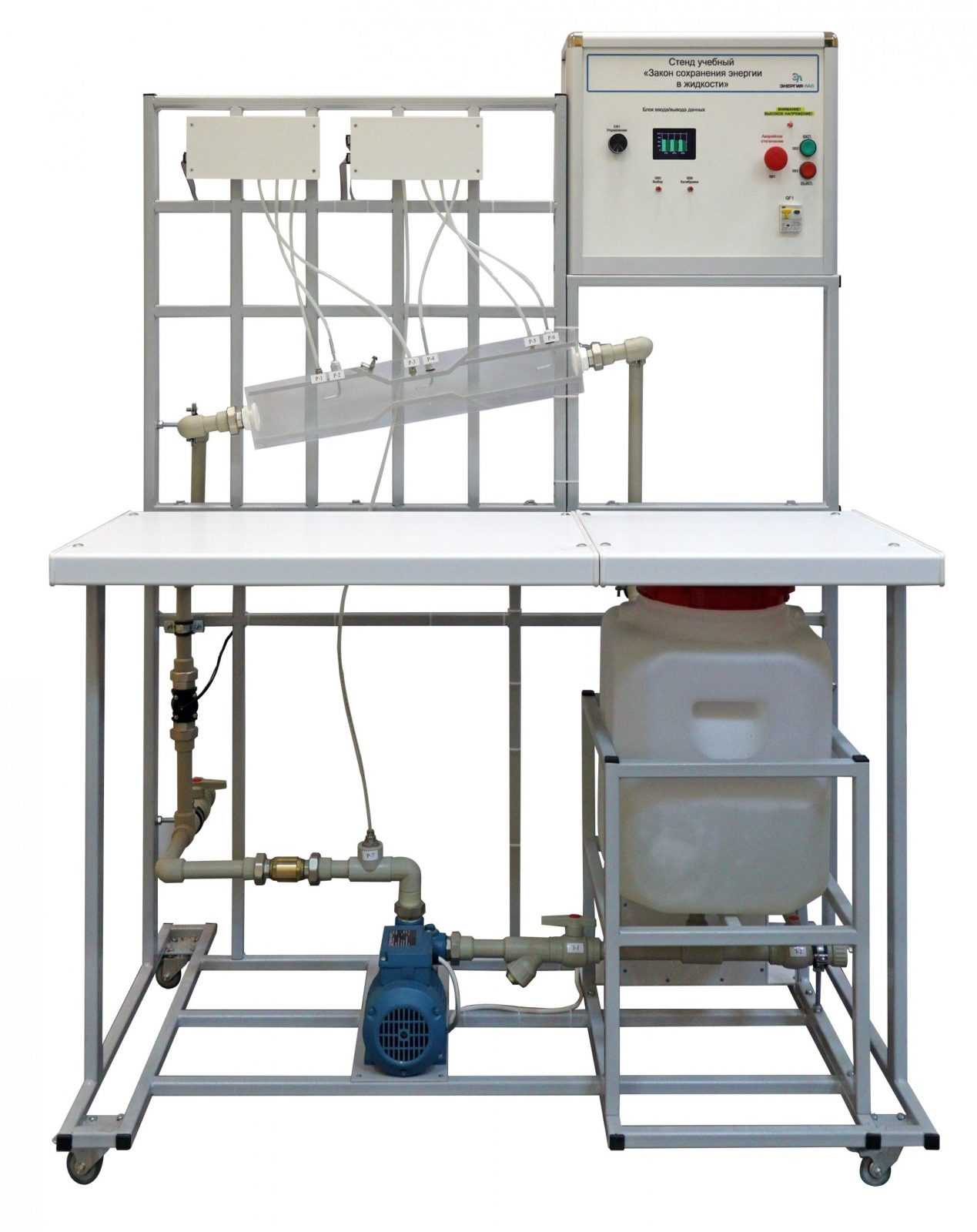 Лабораторный стенд «Закон сохранения энергии при течении жидкости» предназначен для проведения для проведения лабораторных работ в высших заведениях для студентов, обучающихся по курсу «Механика жидкости и газа», «Гидравлика», «Гидромеханика», «Гидрогазодинамика».