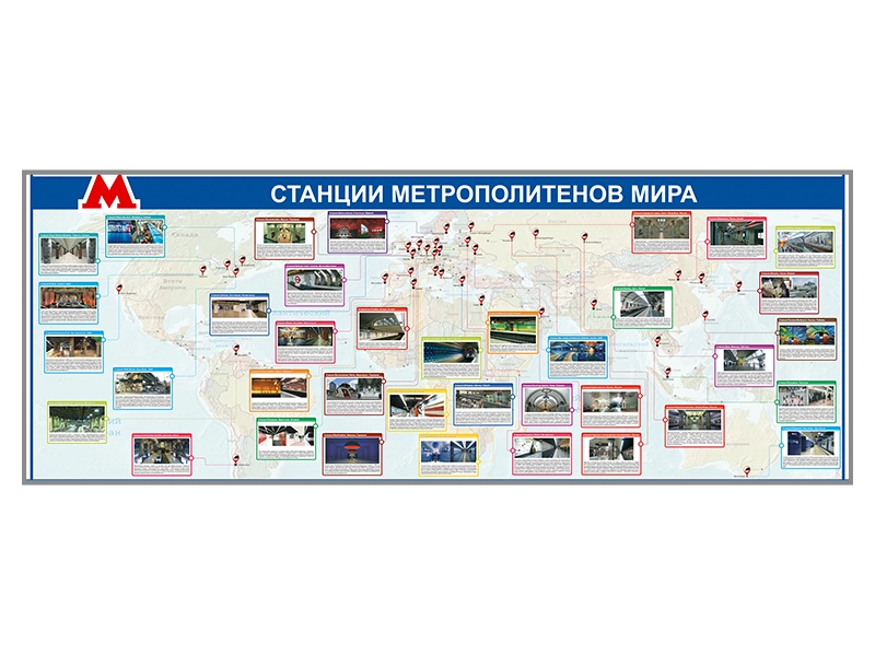 Электрифицированный стенд представляет собой панель с раздельной световой секционной индикацией, содержащую полноцветные изображения станций крупнейших метрополитенов мира, демонстрирующих разнообразные инженерные и технические решения при строительстве станций. В конструкцию учебного оборудования интегрированы высокочувствительные сенсоры для управления стендом при помощи интерактивного воздействия приемо-передающих устройств. Оборудование оснащено программным обеспечением "Виртуальный учитель", громкость которого изменяется при помощи сенсорного регулятора, расположенного на лицевой панели. Также регулировку громкости можно осуществлять при помощи беспроводного пульта дистанционного управления.