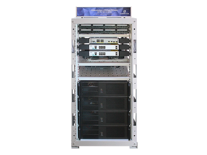 Комплект учебно-лабораторного оборудования "Глобальные компьютерные сети на базе оборудования Cisco" предназначен для проведения лабораторно-практических работ студентами высших, средних специальных и профессионально-технических учебных заведений. Стенд позволяет получить опыт и навыки построения локальных и глобальных компьютерных сетей, построенных на базе стека протоколов TCP/IP.