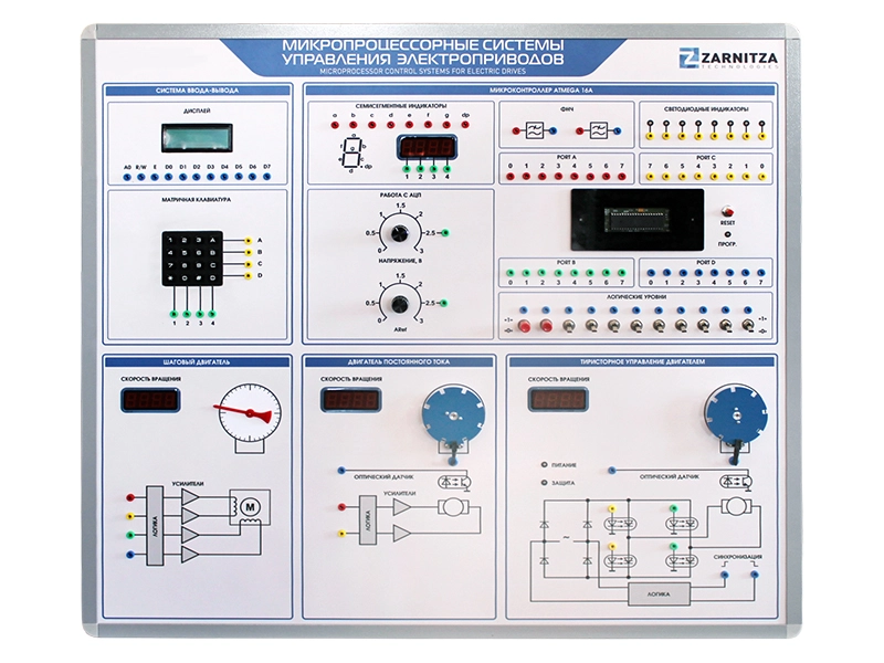 Комплект учебно-лабораторного оборудования "Микропроцессорные системы управления электроприводов" предназначен для проведения лабораторно-практических работ по программированию микроконтроллеров с целью получения опыта и навыков в области создания автоматических систем управления исполнительными устройствами, обслуживания систем датчиков и использования различных типов двигателей в различных режимах управления. Позволяет изучить устройство и функционирование различных исполнительных и периферийных устройств, закрепить навыки программирования на языке Си. Оборудование может применяться для обучения в общеобразовательных учреждениях, учреждениях начального, среднего и высшего профессионального образования для получения базовых и углубленных профессиональных знаний и навыков по направлениям: "Робототехника", "Автоматические системы управления", "Основы микроконтроллерной и микропроцессорной техники".