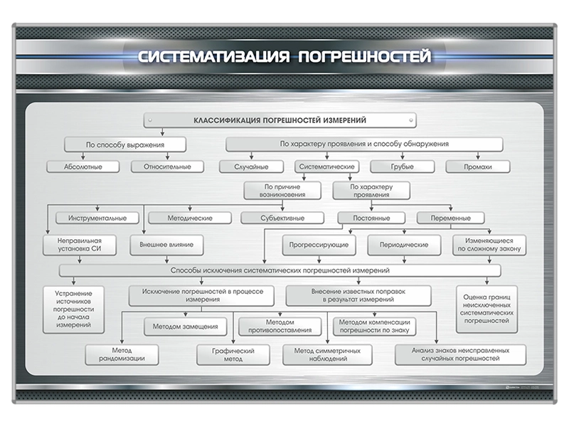 Стенд «Систематизация погрешностей» представляет собой информационную панель на которой размещена информация о систематизации погрешностей.
