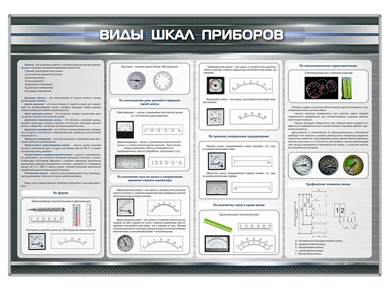 Стенд предназначен для ознакомления с видами приборных шкал.