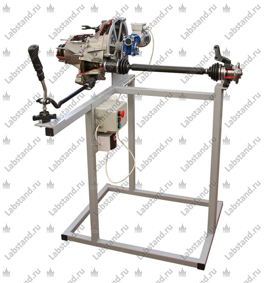 Состав: трансмиссия переднеприводного легкового автомобиля марки «ВАЗ» в сборе с разрезами основных узлов, электромеханический привод, паспорт, металлическая подставка напольного исполнения.