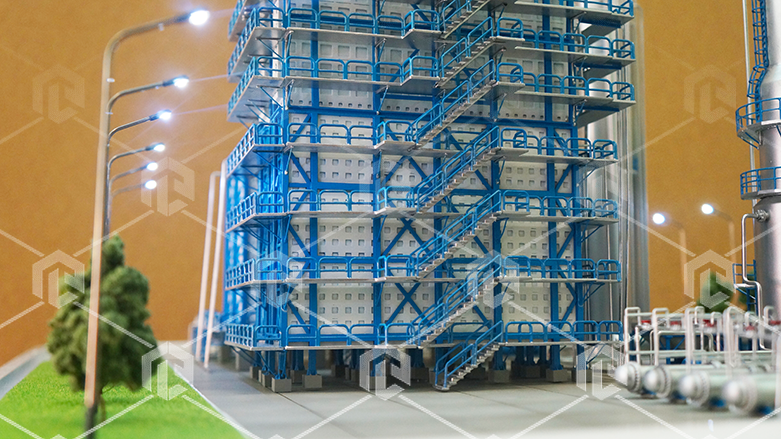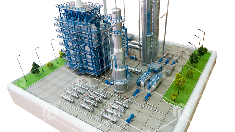 Стационарный интерактивный макет на мобильной платформе позволяет изучать последовательность и логистику технологических процессов атмосферного блока переработки нефти с возможностью сенсорного ввода и управления, отображать трехмерные разрезы выбранного элемента оборудования на дисплее макета.