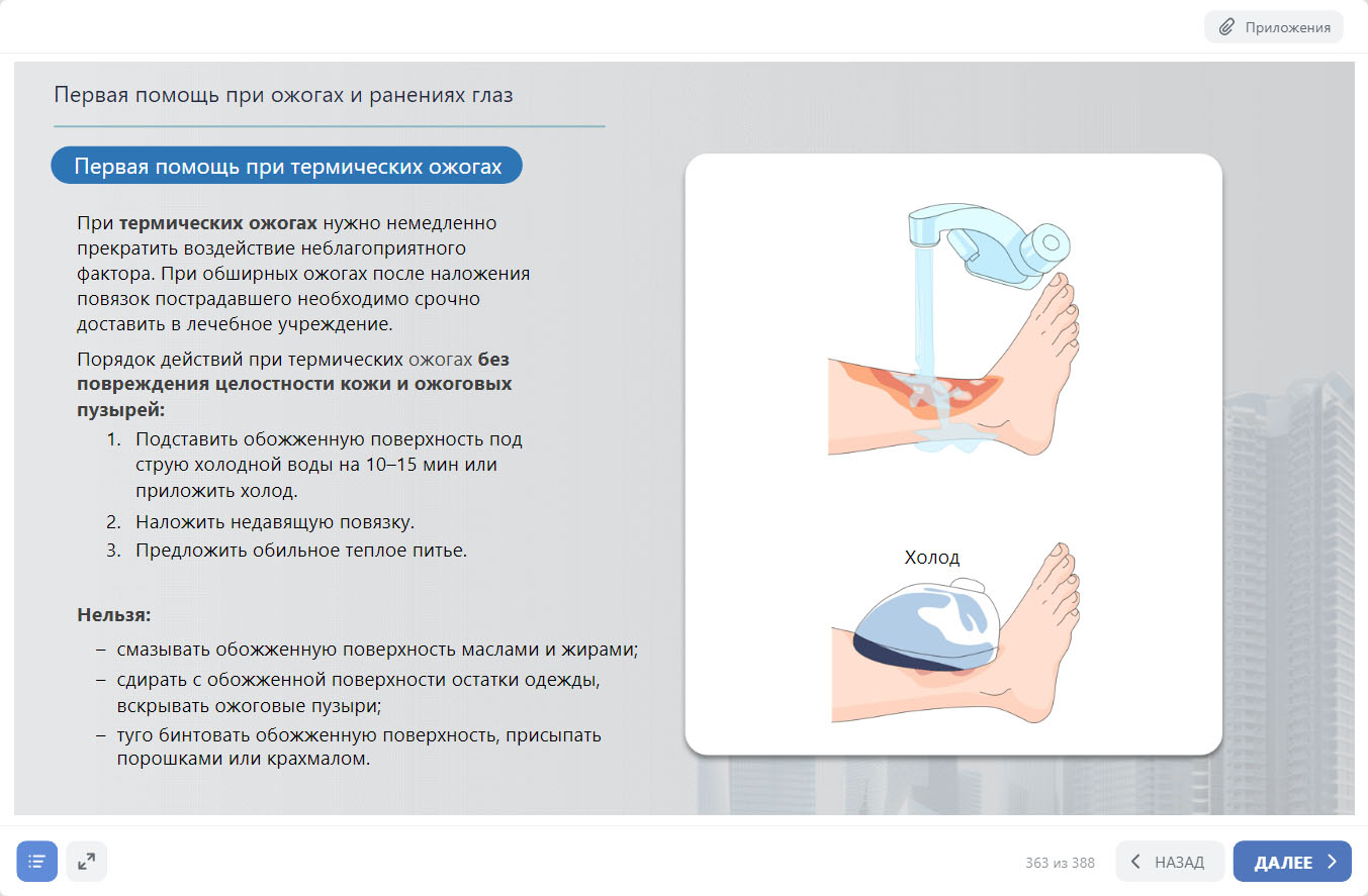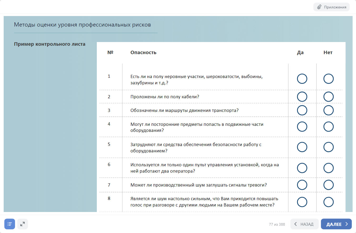 Курс соответствует программе обучения безопасным методам и приемам выполнения работ при воздействии вредных и (или) опасных производственных факторов, источников опасности, идентифицированных в рамках специальной оценки условий труда и оценки профессиональных рисков, продолжительностью не менее 16 ч (п. 46, б, Постановление Правительства РФ от 24.12.2021 N 2464).