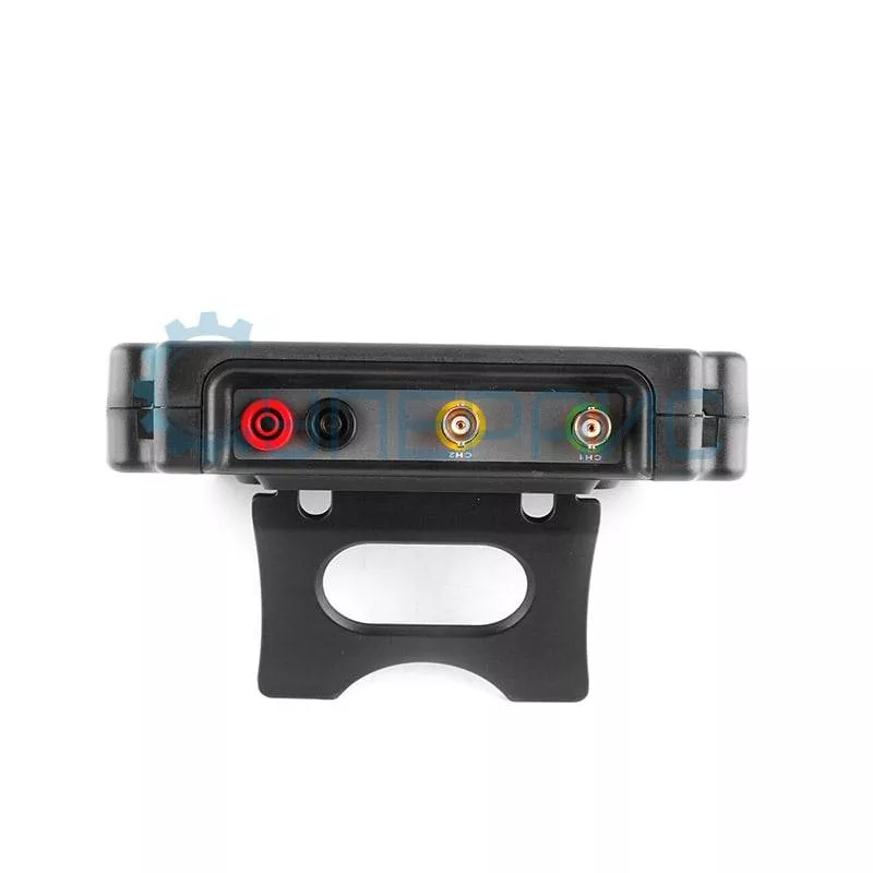 Цифровой двухканальный осциллограф имеет частоту дискретизации 100 Выб/с и полосу пропускания 10 МГц. Встроенный мультиметр способен измерять постоянное и переменное напряжение, сопротивление и емкость, а также обладает возможностью проверки диодов и звуковой прозвонки цепи. Скопметр способен сохранять и масштабировать изображения, также оснащен пятью режимами регулировки яркости экрана, что способствует более комфортному просмотру показаний прибора. Работает осциллограф-мультиметр от двух литиевых батареек, обеспечивающих до 5 часов бесперебойной работы.
