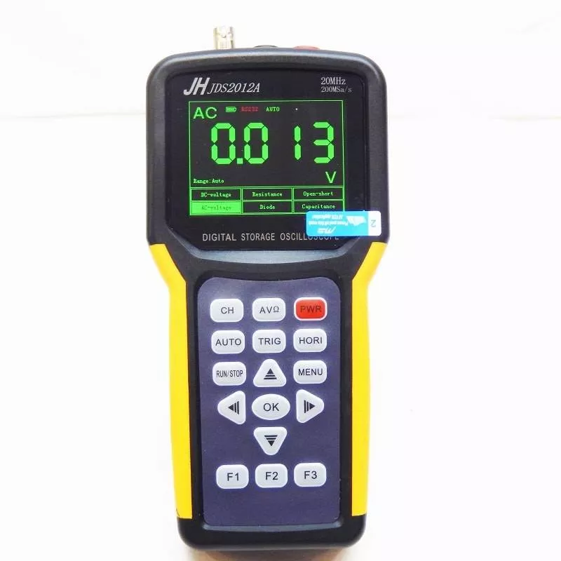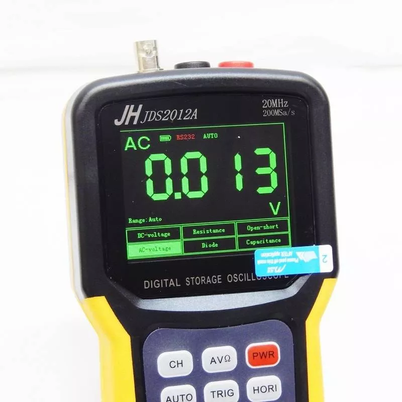 JINHAN JDS2012A - это одноканальный цифровой портативный осциллограф с функцией мультиметра. Прибор, с частотой дискретизации 200 МВыб/с, с полосой пропускания 20 МГц и объемом памяти 2000 точек, совмещает в себе высокие стандарты безопасности, прочную переносную конструкцию и набор функций настольных осциллографов. В режиме мультиметра прибор позволяет производить прозвонку контактов и тестирование диодов, измерять емкость, сопротивление и силу тока. JINHAN JDS2012A обеспечивает высокоточный просмотр осциллограмм и позволяет хранить и печатать полученные результаты. Устройство просто в эксплуатации, имеет небольшой вес и габариты. Благодаря питанию от литиевых аккумуляторов портативный осциллограф приспособлен для работы в полевых условиях и способен обеспечивать до пяти часов автономной работы. Высокопроизводительный и удобный в обращении прибор, который подойдет как начинающим, так и профессионалам.