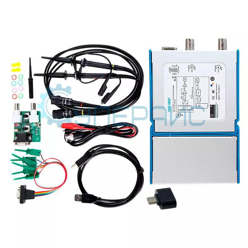 | USB кабель - 1 шт щупы для осциллографа - 2 шт модуль логического анализатора - 1 шт модуль генератора сигналов - 1 шт BNC кабель с зажимами - 1 шт OTG переходник micro USB - 1 шт | ||