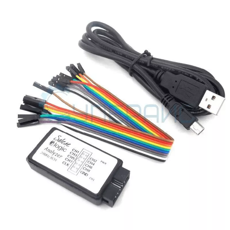 Недорогой измерительный прибор для записи и отображения на ПК последовательности цифровых сигналов. Цифровой анализатор имеет 8 каналов, обладает пропускной способностью и максимальной частотой дискретизации – 25 МГц. Поддерживает два логических уровня: 5,3 Вольт и 3,2 Вольт, хранит до 10 Гб данных.