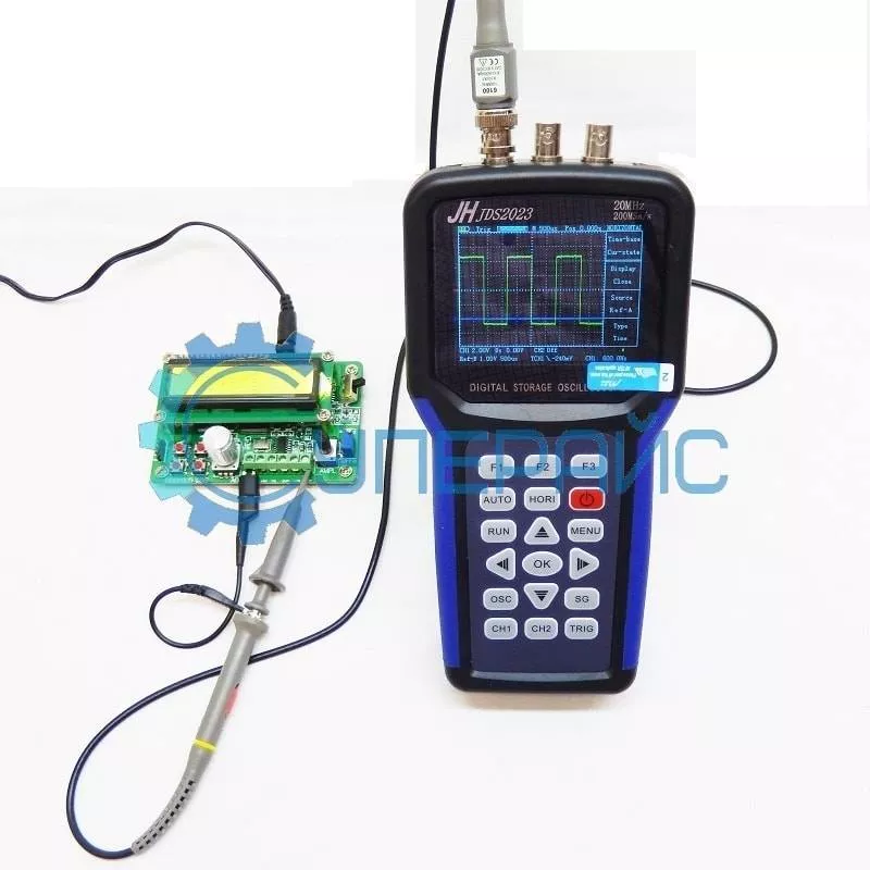 Портативный цифровой осциллограф JINHAN JDS2023 - это измерительный прибор, предназначенный для исследования формы электрических сигналов. В приборе предусмотрен встроенный генератор сигналов способный воспроизводить высокоточный синусоидальный сигнал с частотой до 5 МГц и прямоугольный, треугольный, пилообразный сигналы с частотой до 1 МГц. Данный портативный осциллограф обладает широким функционалом, снабжен двумя каналами (одним аналоговым и одним цифровым), частотой дискретизации 200 МВыб/с, полосой пропускания 20 МГц и объемом памяти 2000 точек. Устройство просто в эксплуатации, имеет небольшой вес и габариты. Благодаря питанию от литиевых аккумуляторов портативный осциллограф приспособлен для работы в полевых условиях и способен обеспечивать до пяти часов автономной работы. Прибор оснащен LCD - дисплеем со встроенной подсветкой и клавишной панелью управления, имеет ударопрочный корпус. Высокопроизводительный и удобный в обращении прибор, который подойдет как начинающим, так и профессионалам.