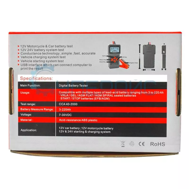 С MICRO-200 Pro вы сможете не только провести тесты на ёмкость и напряжение аккумулятора, но и проверить внутреннее сопротивление, систему запуска, систему зарядки и пульсацию напряжения. Подсветка и цифровой дисплей обеспечивают удобное визуальное отображение результатов, а трехцветная индикация светодиодов помогает быстро определить состояние аккумулятора.