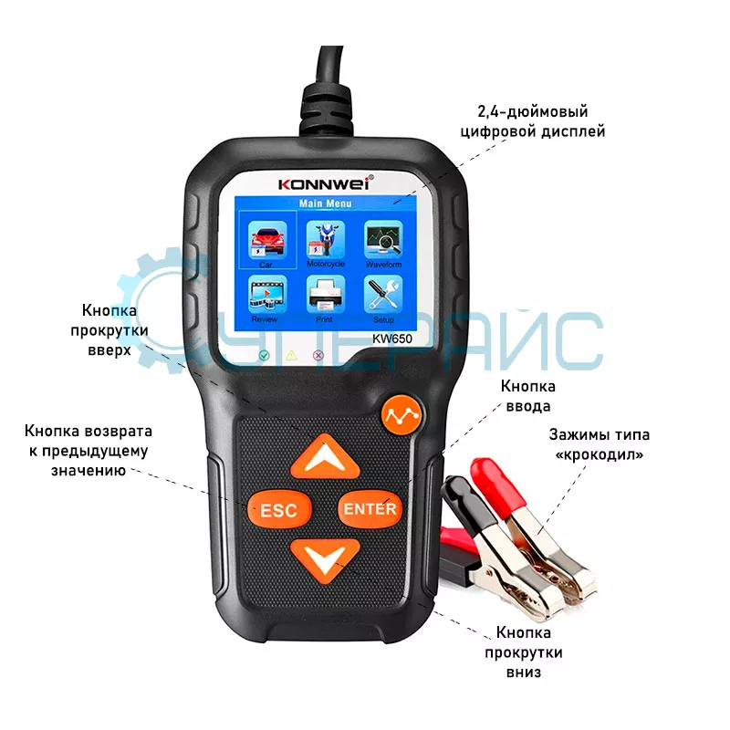 Комплектация тестер зарядки аккумулятора автомобиля Konnwei KW650 – 1 шт